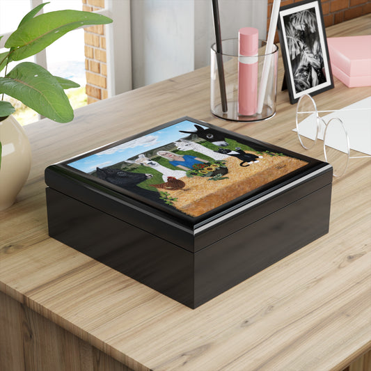Farm Animal Jewelry Box, Glossy Keepsake Box with Original Art, Banquet at Jenny’s Farm by Roberta Pacino