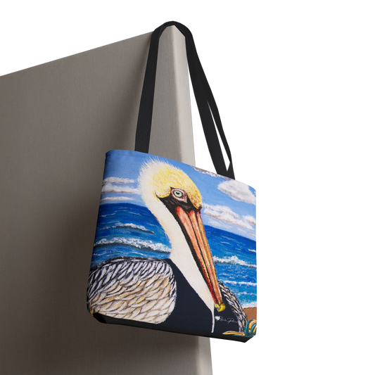 Palermo the Pelican Tote Bag – Original Art by Roberta Pacino, Coastal Seaside Design, All-Over Print