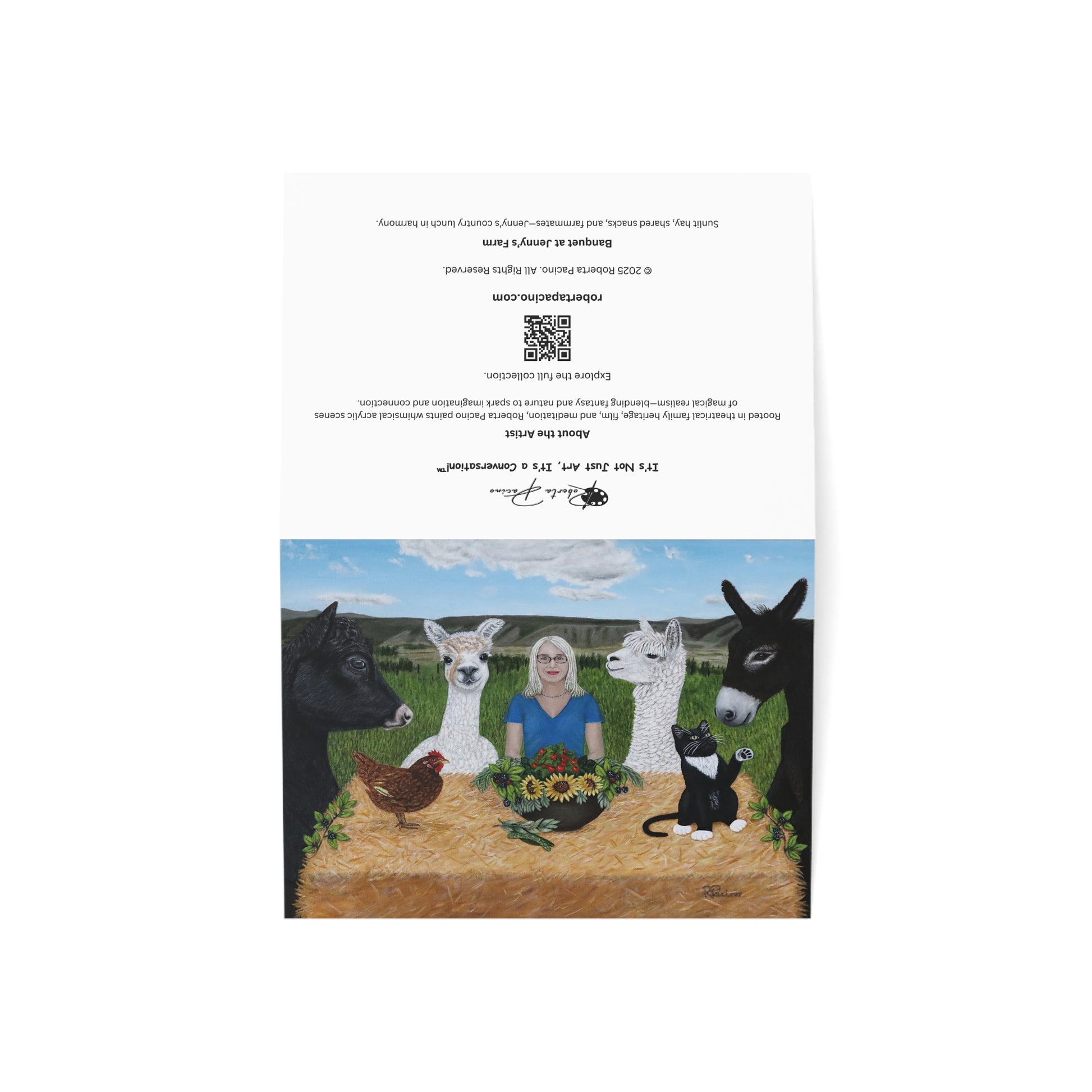 Banquet at Jenny’s Farm – 7x5 Greeting Card, Single or 10-Pack, Original Art by Roberta Pacino