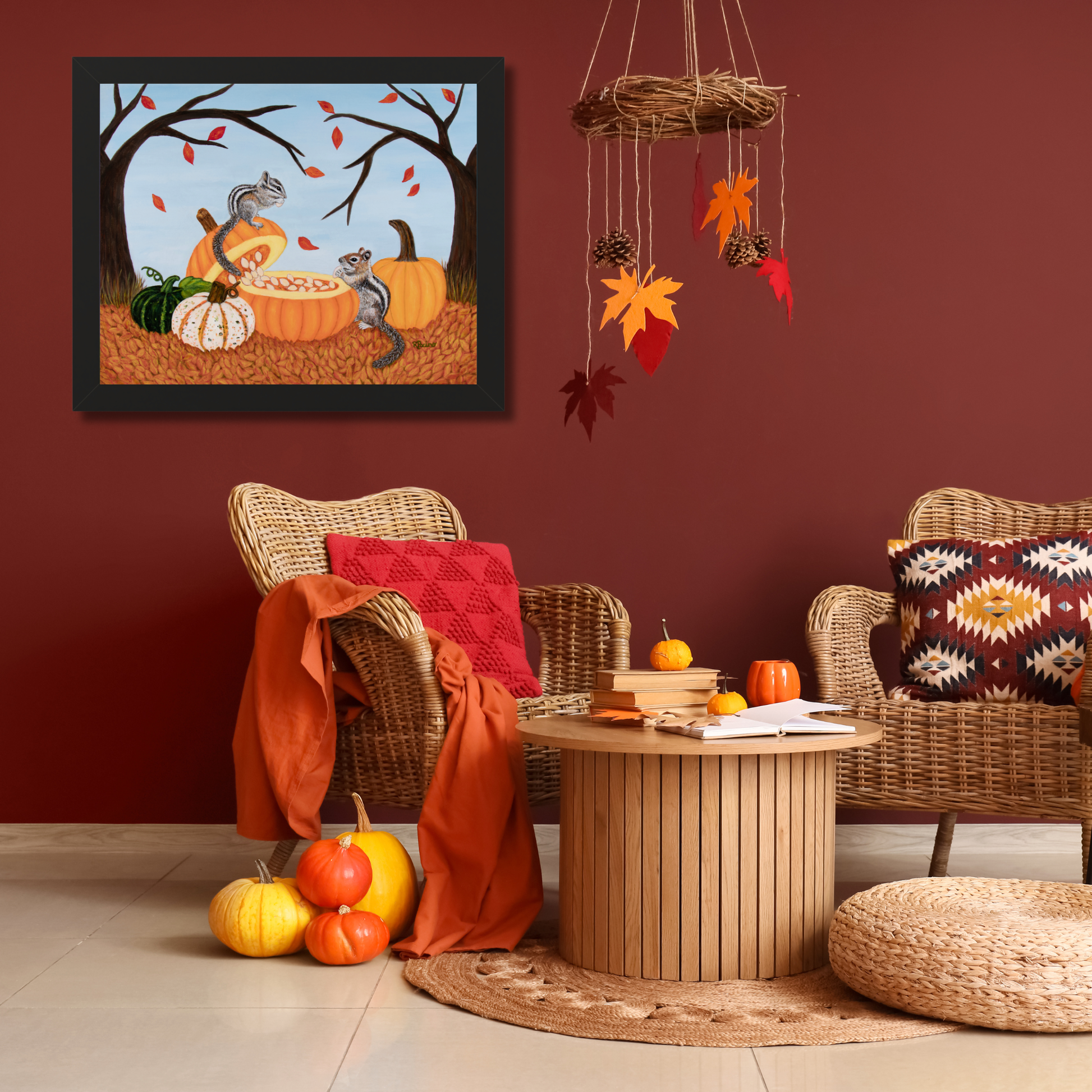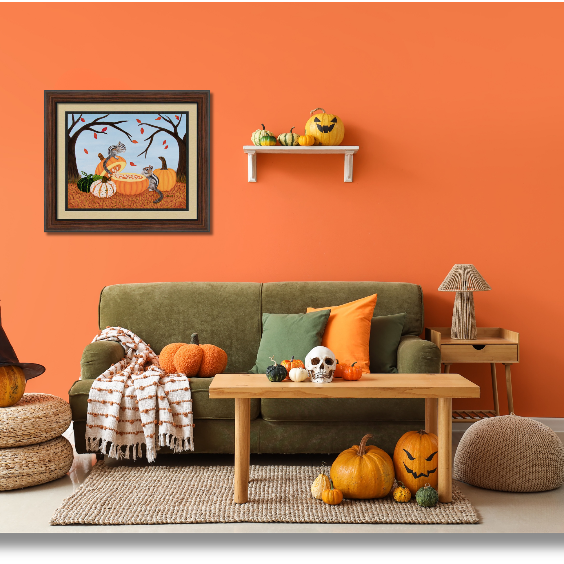 With its rich autumn palette and storybook spirit, Pumpkin Patch Pals brings warmth, conversation, and a touch of enchantment to your space. Whether displayed in a kitchen, entryway, child’s room, reading nook, or cozy seasonal setting, it becomes a cheerful focal point that radiates the beauty of fall.