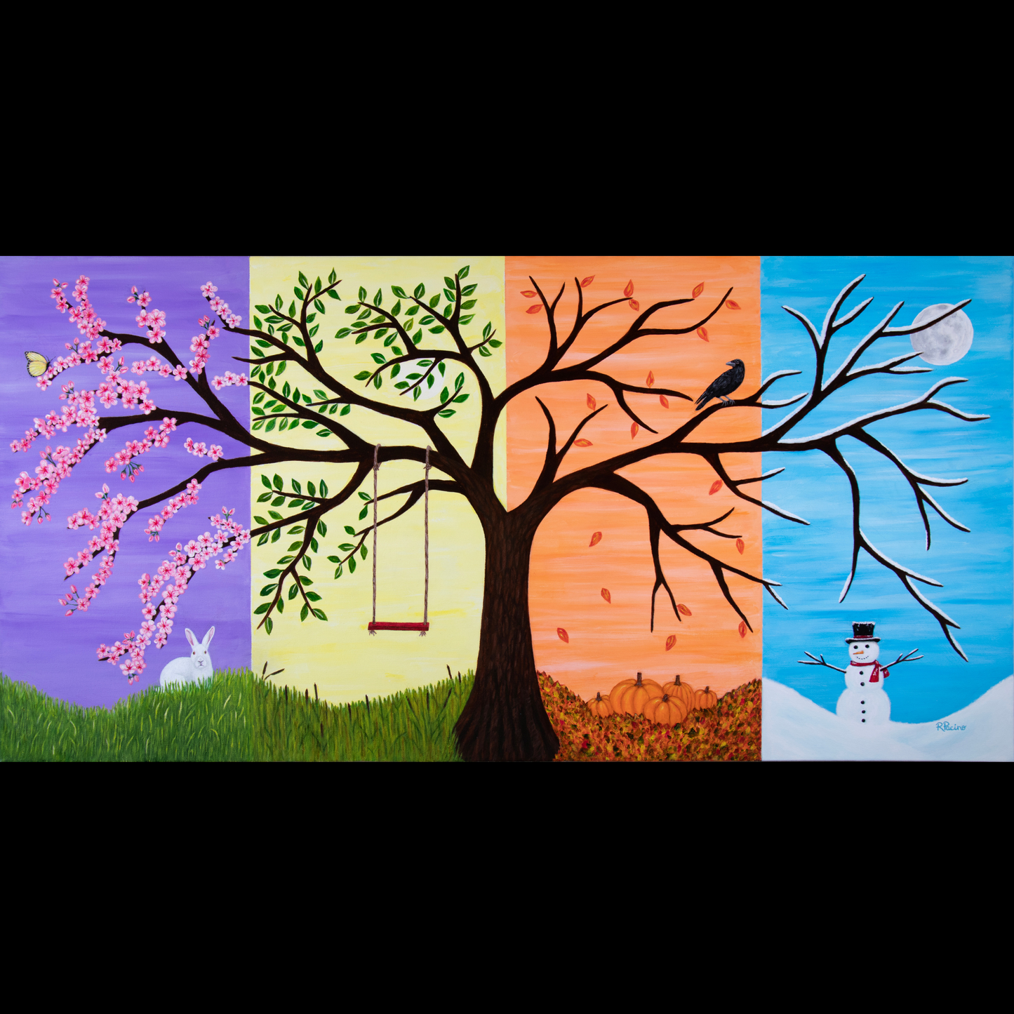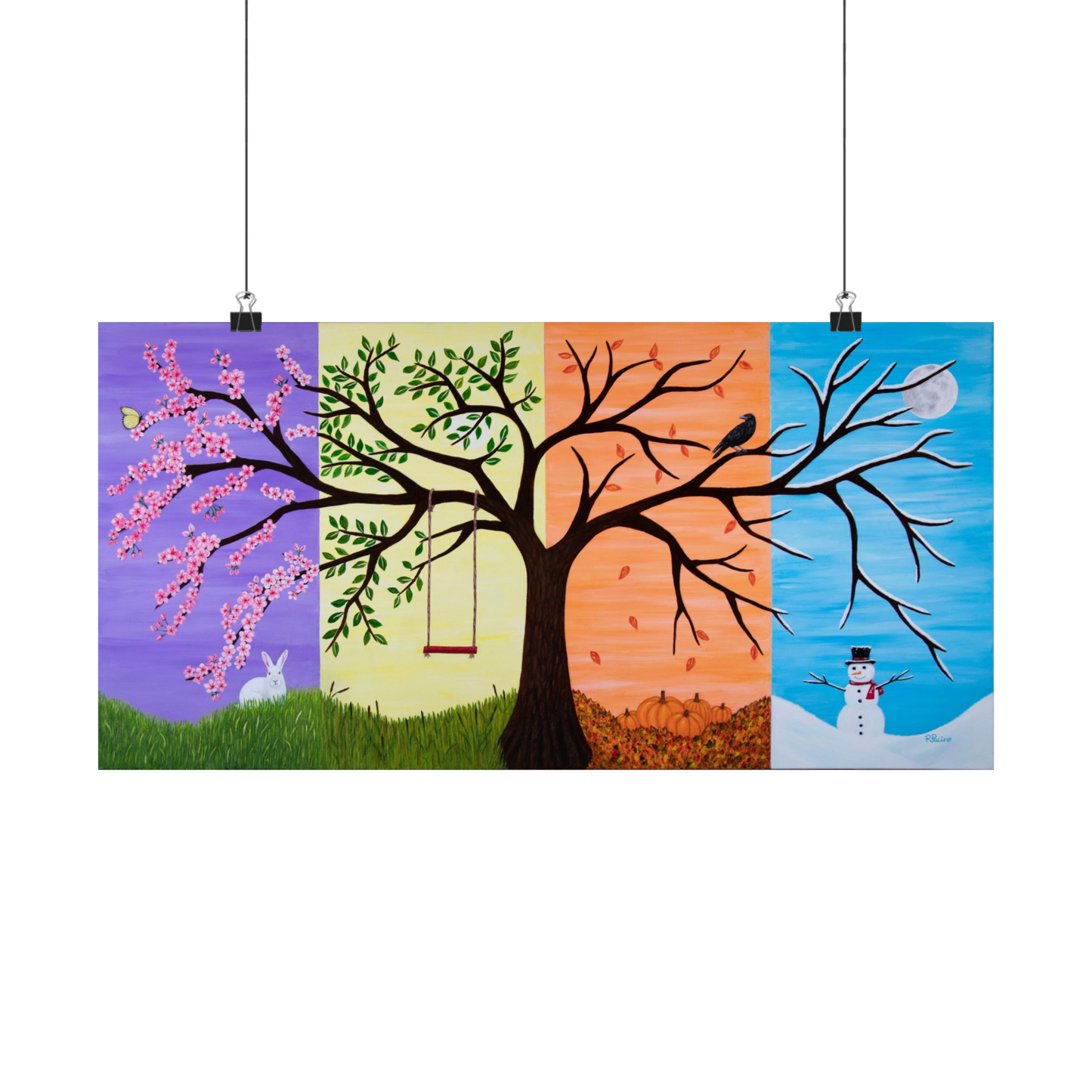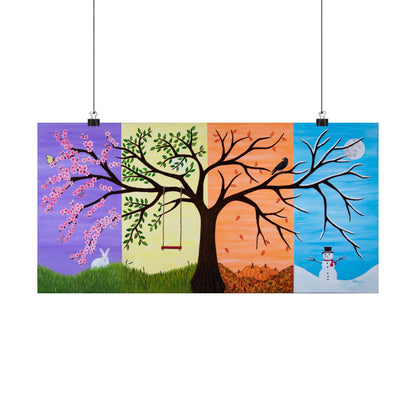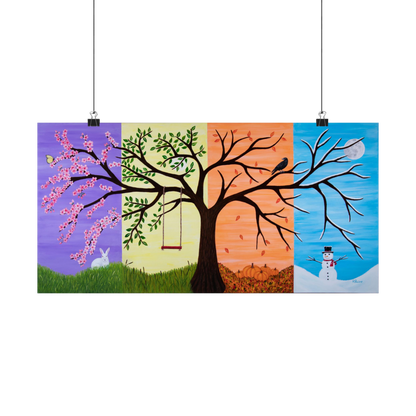 Introducing Tree of Life, a breathtaking fine art print by Roberta Pacino that captures the beauty, symbolism, and cyclical nature of life through a whimsical fantasy landscape. This exquisite acrylic painting is divided into four stunning sections, each representing a different season’s sky—offering a rich, ever-evolving tapestry of colors and meaning.