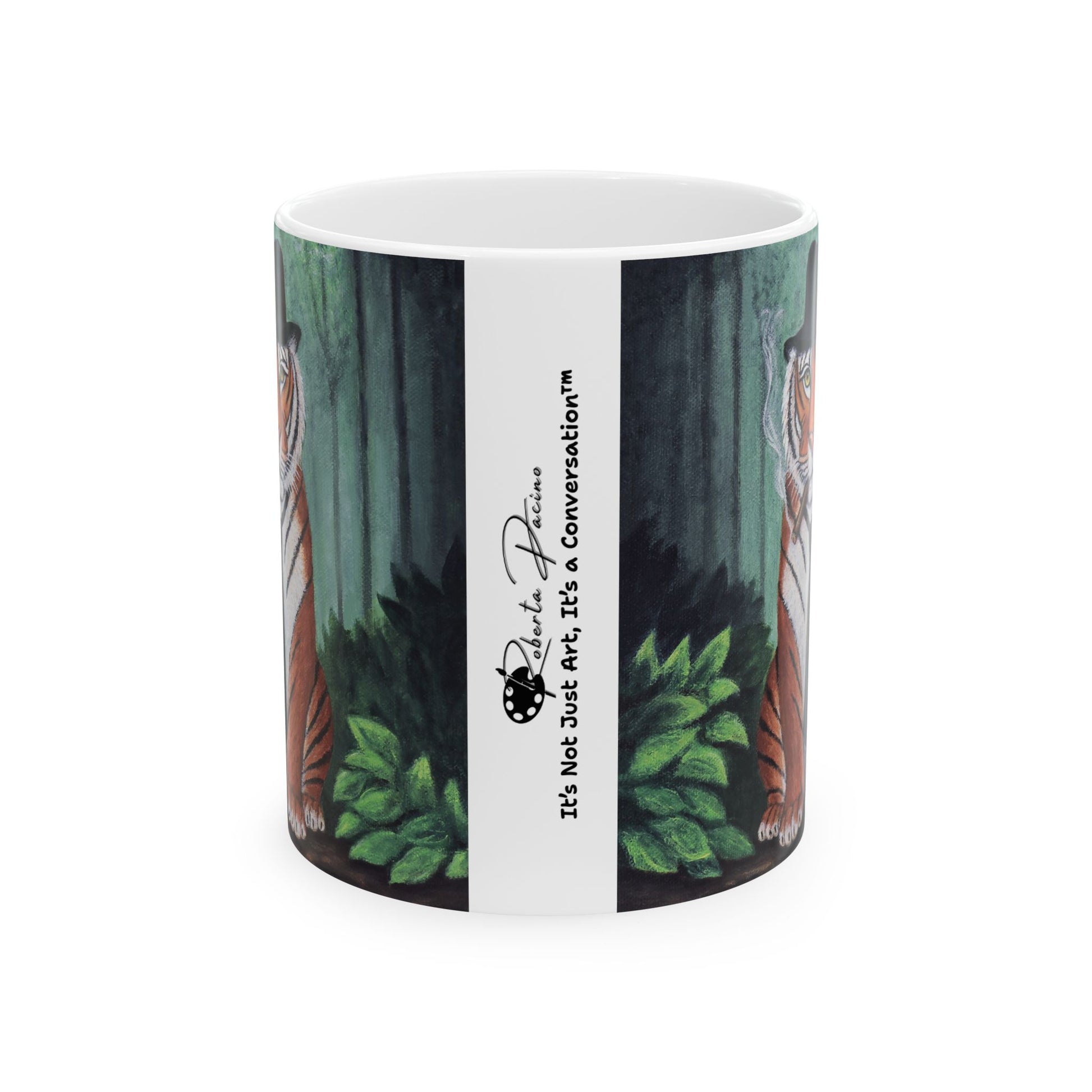 Vito Stripes Tiger Noir Mug – 11 oz Ceramic Coffee Mug, Original Art by Roberta Pacino